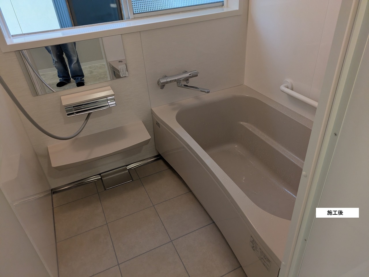 浴室はスラブ天井で天井高さが低かったため、天井カットで対応可能なタカラスタンダード製ぴったりサイズグランスパを提案しました。広さもできる限り確保し温かいお風呂になったと喜んでいただきました。